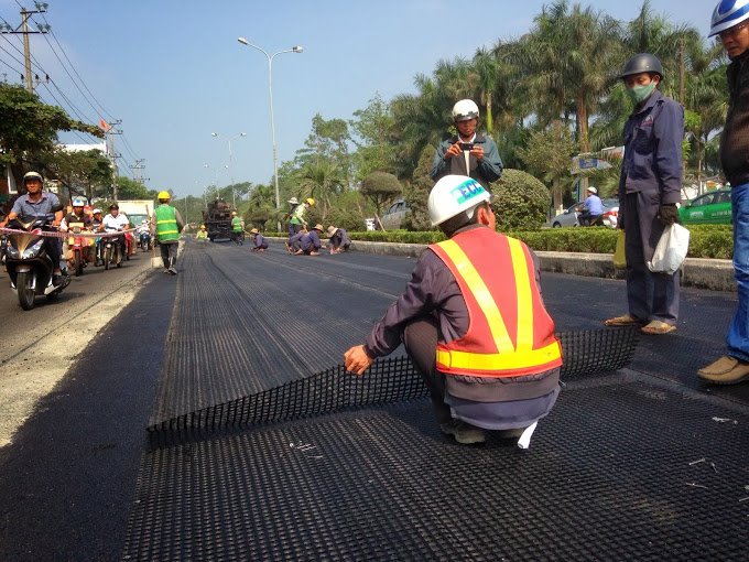 Gia cố mặt đường nhựa: Giúp giảm thiểu rạn nứt và gia tăng tuổi thọ mặt đường.